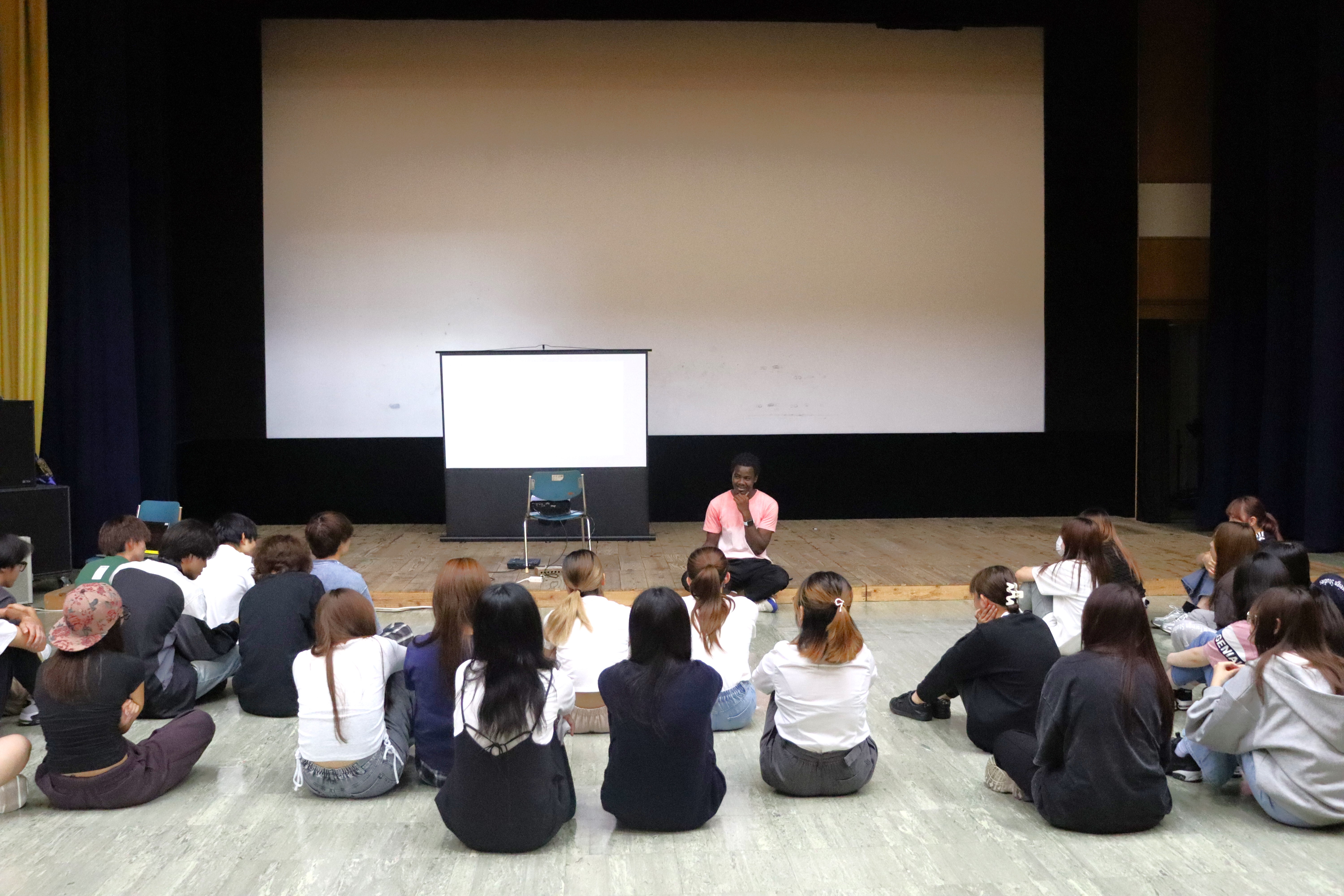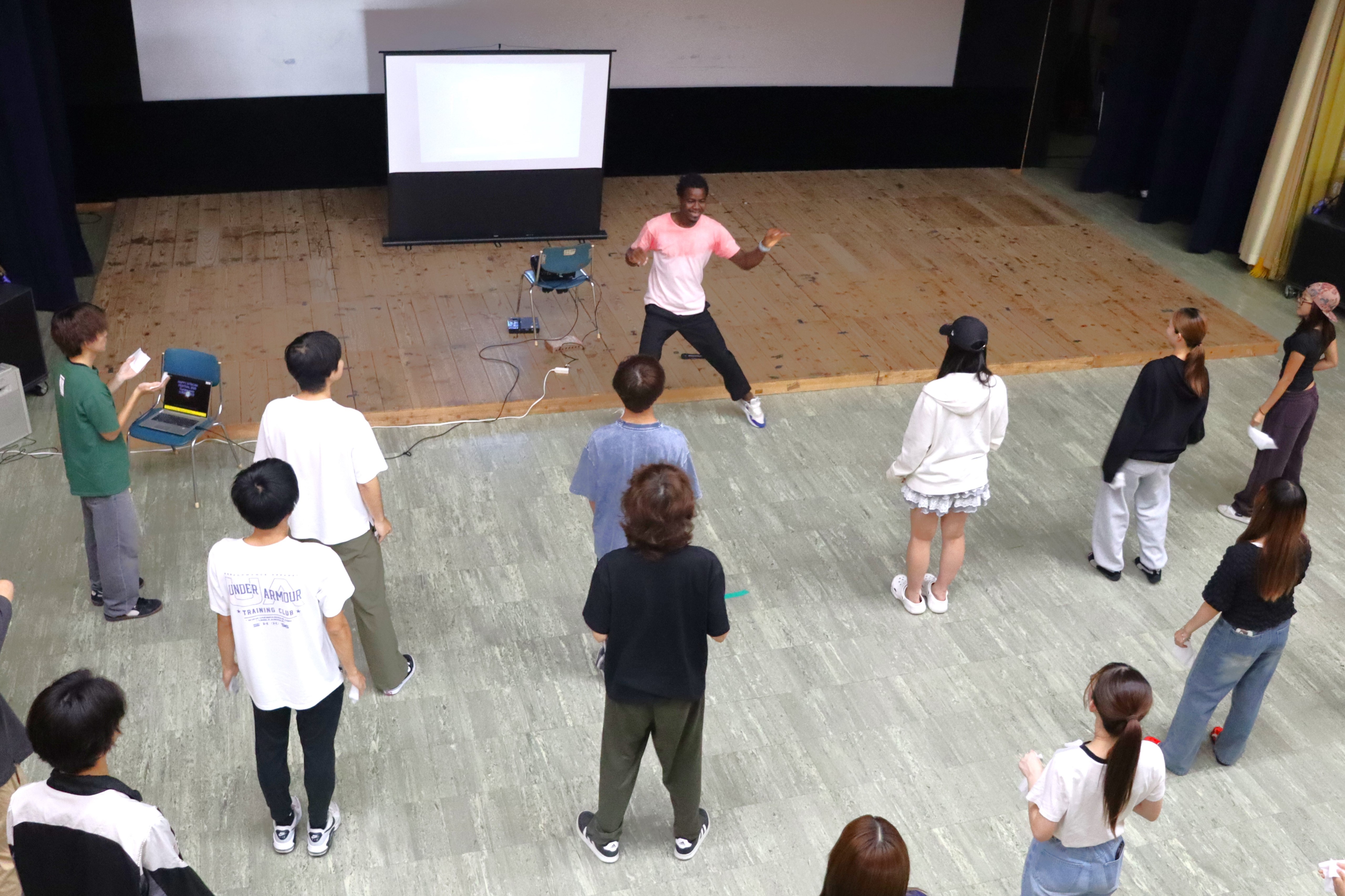 当日は、西トーゴ出身で、現在は日本を「第二の故郷」として活躍するダンサー及びコレオグラファー(振付家)であるアラン・シナンジャ氏をお迎えし、「The Role of African Culture in Japan」をテーマにダンス体験や映像鑑賞を行いました。